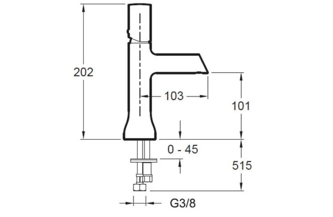 Однорычажный смеситель для раковины с гибкой подводкой. Без донного клапана.